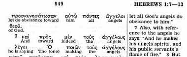 What happened to their promise to assign one meaning to one word and stick with it? Apparently this only works when it is not exposing their false teachings! You see, if they abided by their stated rules and told the truth that Jesus was worshiped, that would be an admission that he is God, and not "a god" as they teach. Oh, what a tangled web they weave! The Watchtower's invented term "did obeisance" was given a definition by them, namely, "...act of bowing, kneeling, prostrating the body, or making some other gesture to betoken submission; or simply the paying of respect. It adequately translates the Hebrew hishta-chawah' and the Greek pro-sky-ne'o in many cases." (Insight on the Scriptures, Vol. 2, page 523). Trouble is, they have no backing by Greek scholars for this invented definition. Second problem for them is that many dictionaries list "obeisance" as a definition of "worship"! Sometimes the Society just can't keep their deceptions straight with each other! Such an example is Hebrews 1:6 in the Purple KIT. Here they put "obeisance" on the Greek/English side and "worship" on the NWT side! What a hoot! If you're going to mistranslate, at least try to be consistent! They had to scramble around and correct their boo-boo in the 1985 navy-blue edition where they hastily did away with the worship of Jesus.