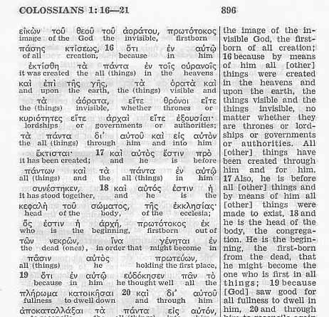 Now, go back and read the text without the addition of the word "other", which has no business being inserted in the first place. At least they put it in brackets here, but when it got to the separate publication of the New World Translation, the brackets disappeared! The truth being taught here is that Jesus is the Creator, and He is "before all things". Therefore He is God, not a creature. No wonder the Watchtower "translators" had to do a major paraphrase to hide this important fact!